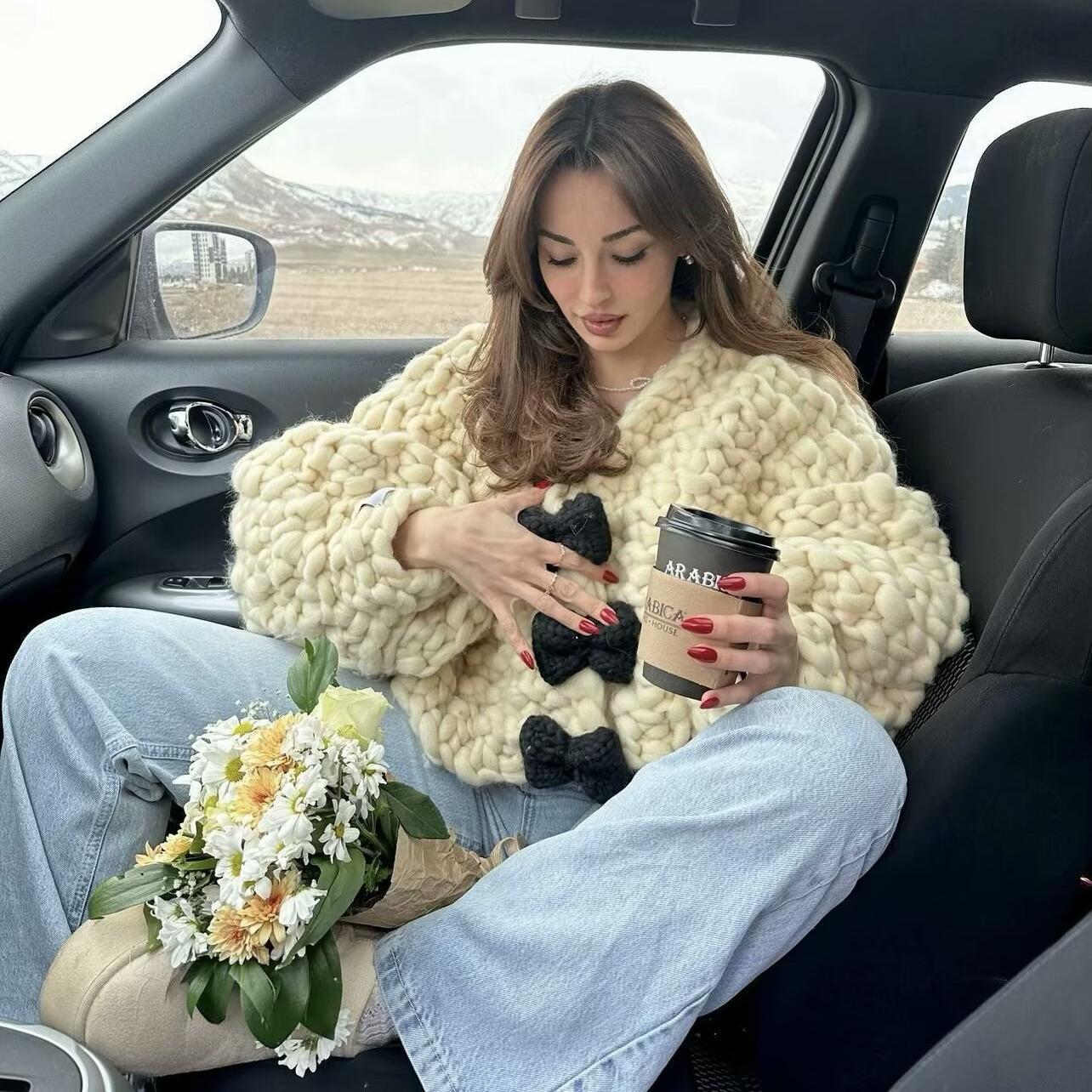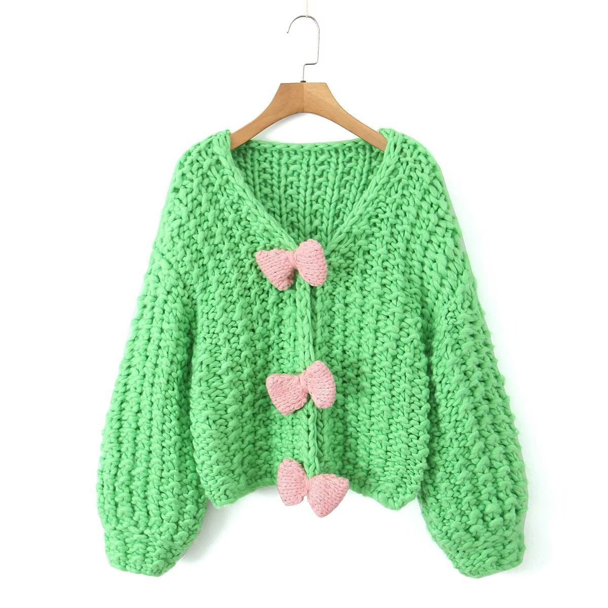 French Bow Sweater Cardigan Jacket Languid Short Heavyweight Knitted Jersey Woman HZ1208