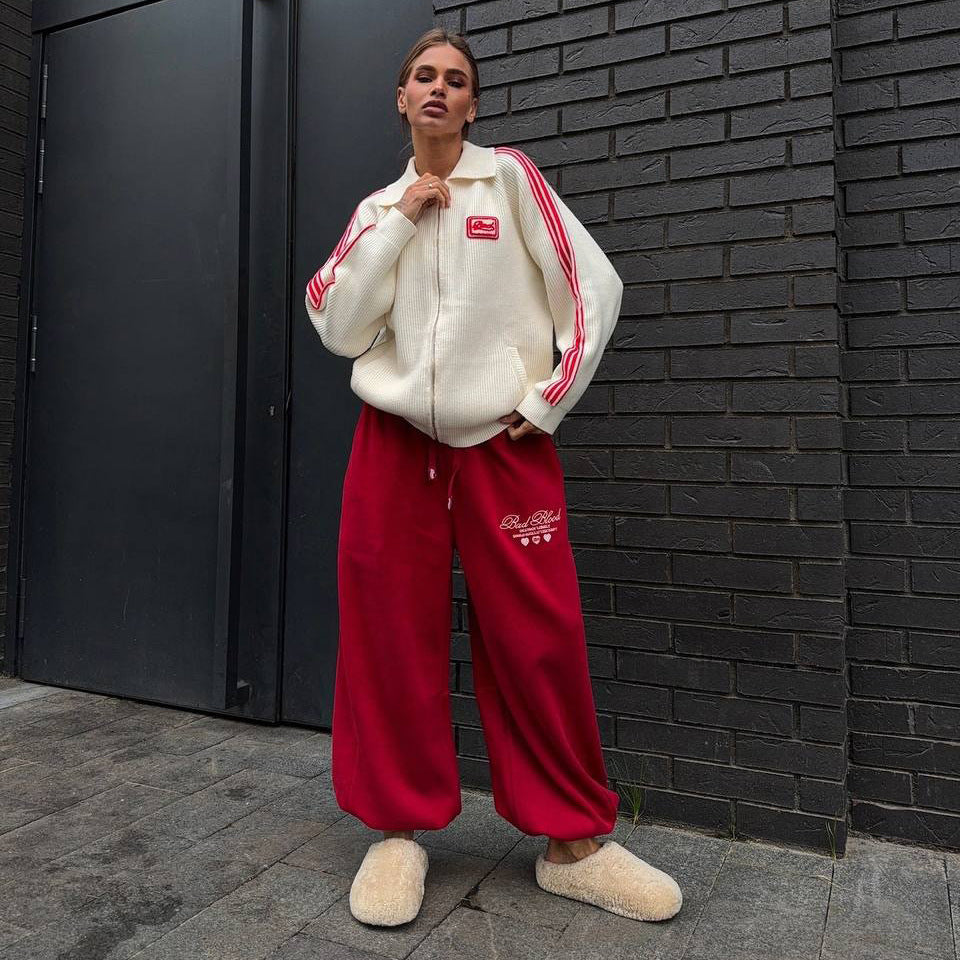 Hot Red Printing Trousers Women Loose Gibe Foot Drawstring Design Street Cool Sports Slacks Autumn And Winter HZ1208