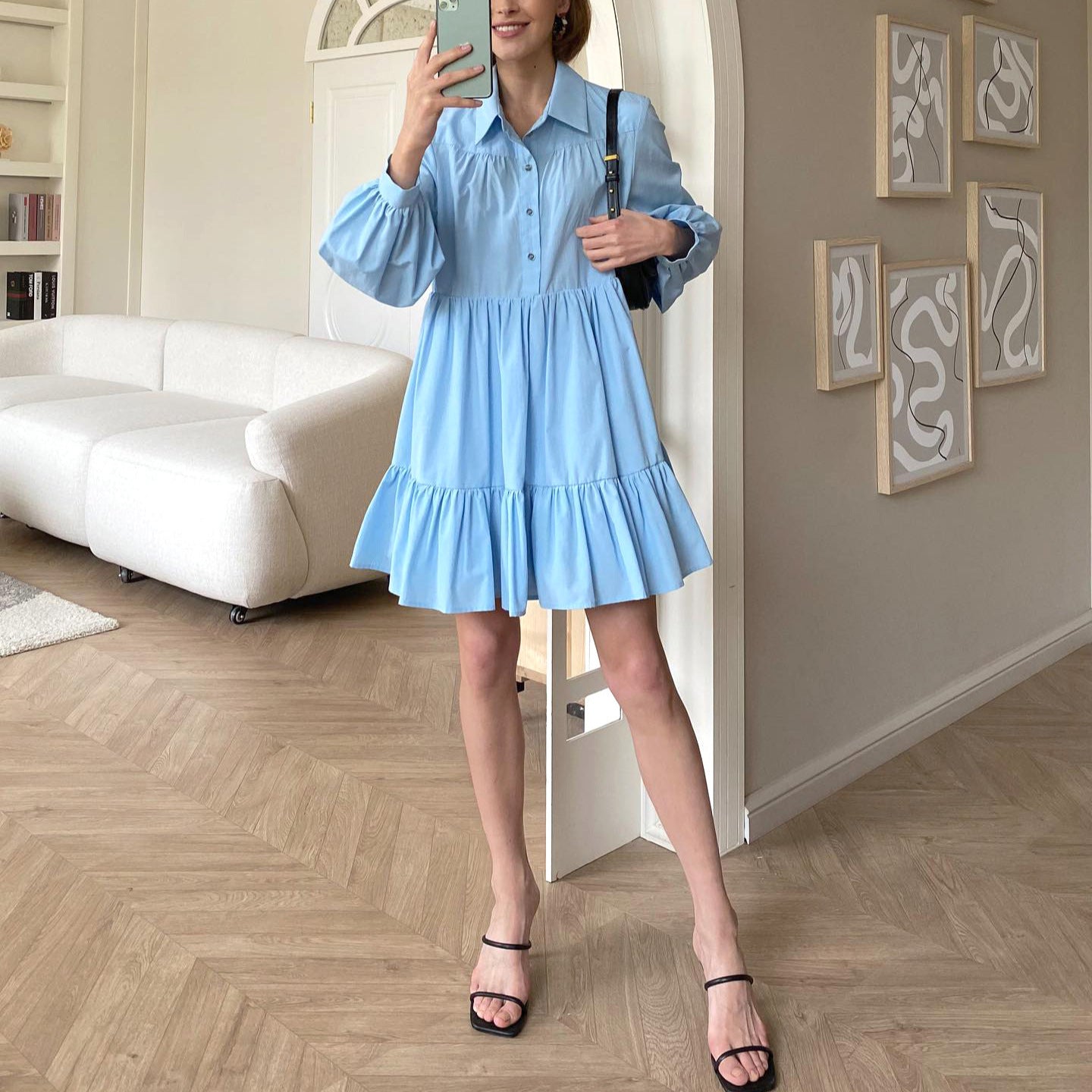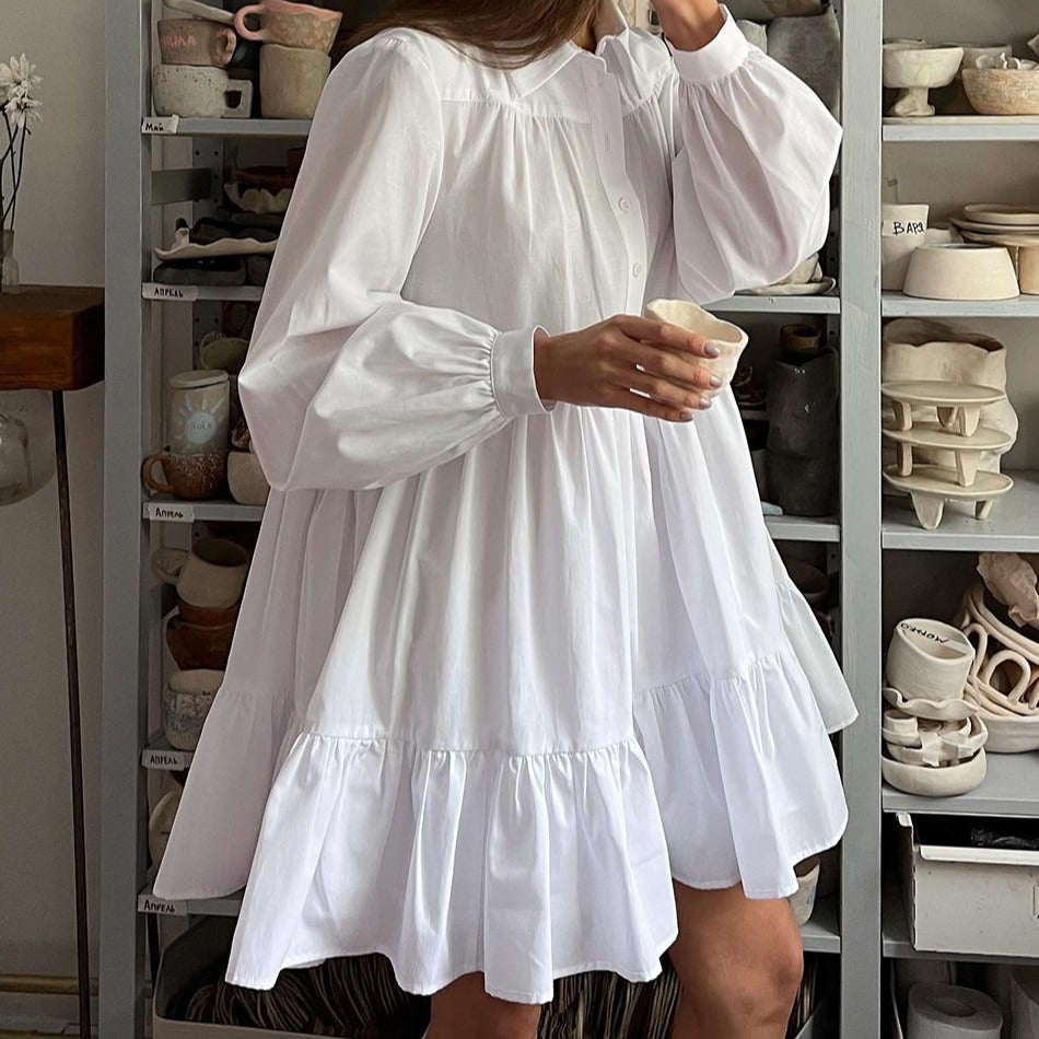2025 Hot Spring New Shirt Dress White Dress Women's OL Simple Cotton Top HZ1208