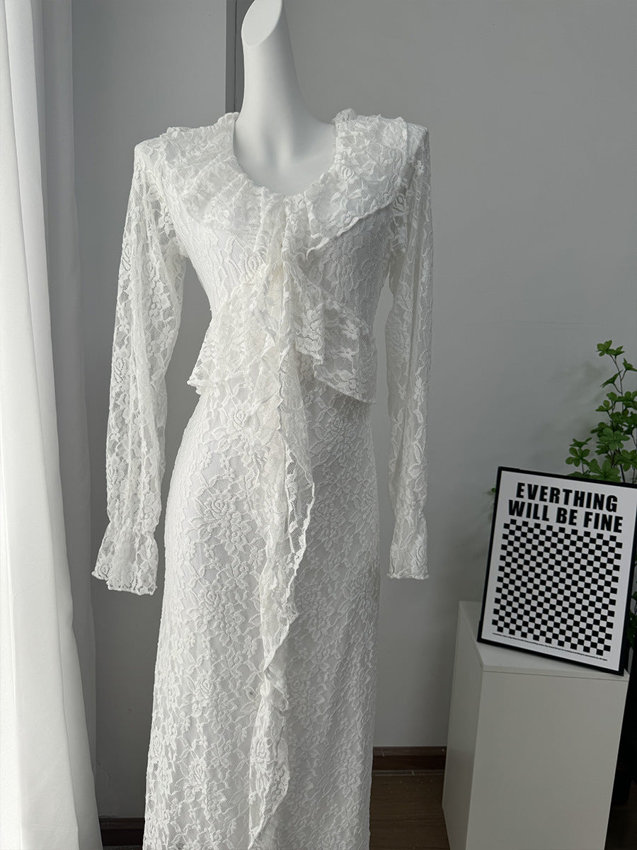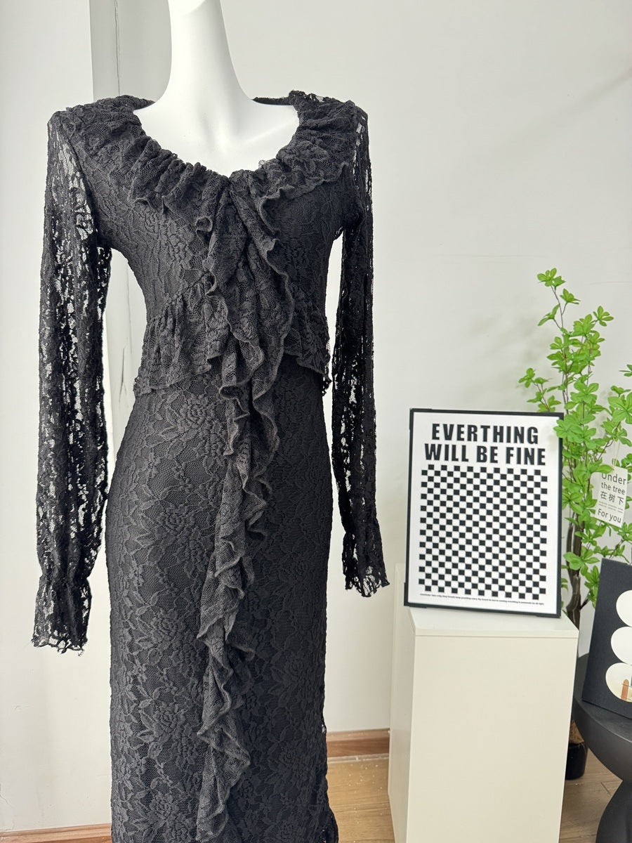 2025 New Women's Elegant Temperament V-Neck Lace Lotus Side Banquet Ass Dress Dress Dress HZ1208