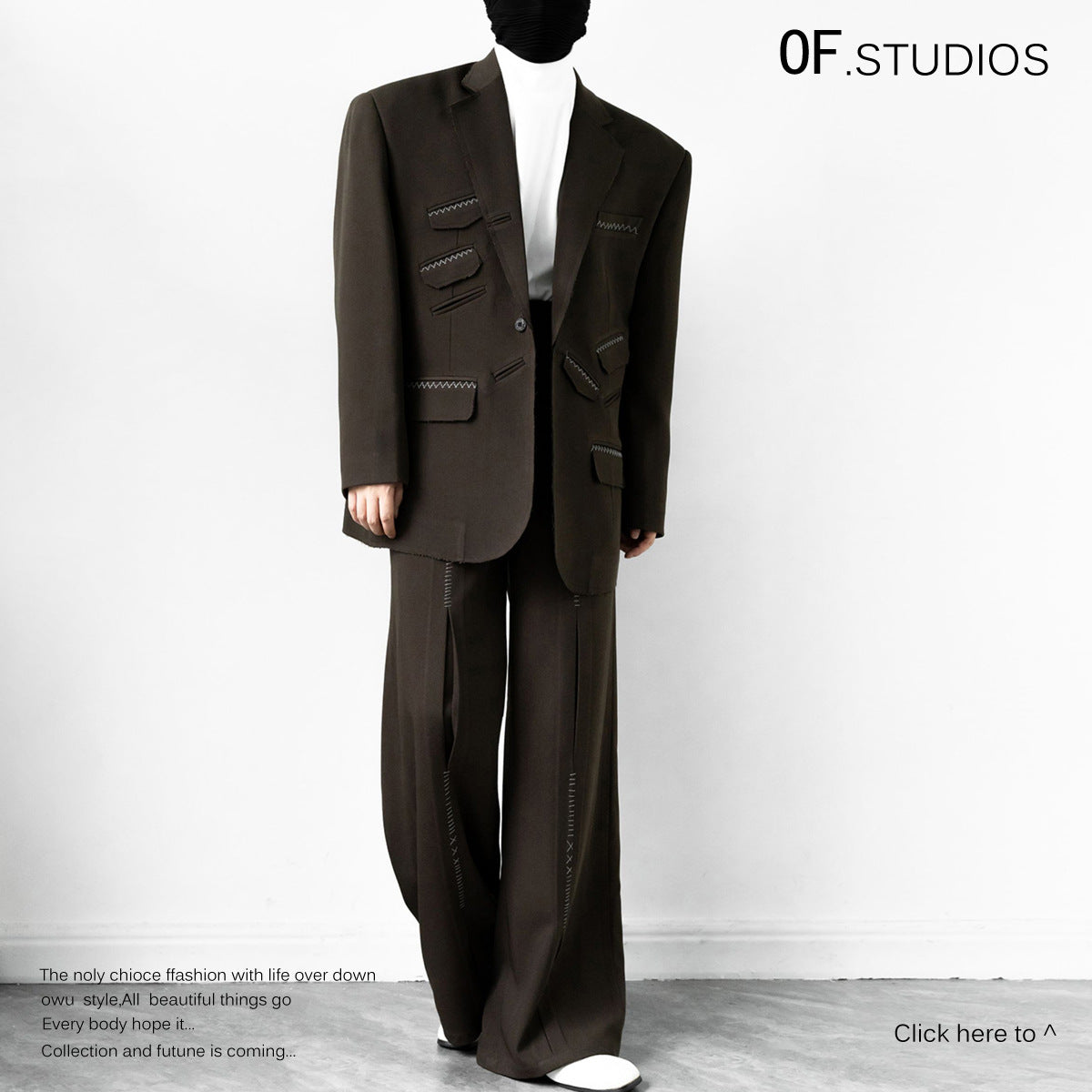 25 Autumn New Personalized Loose Version Of Real Wood Buckle Combination Top Suit + Pants Two-Piece Set Female 1816 HZ1208