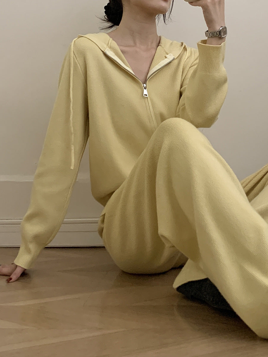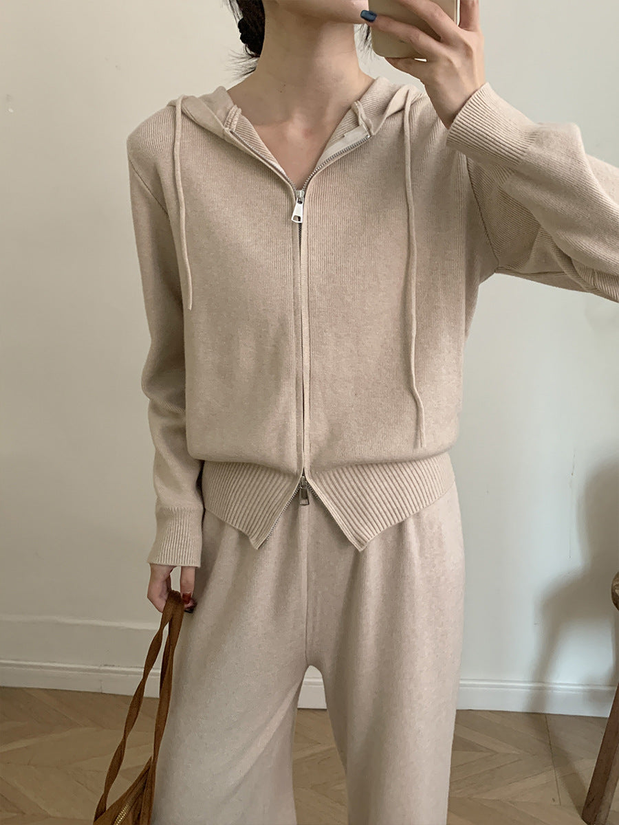 Hooded Sweater Set Women Loose Soft Jacket Sweater Cardigan + Wide Leg Pants Two Sets HZ1208