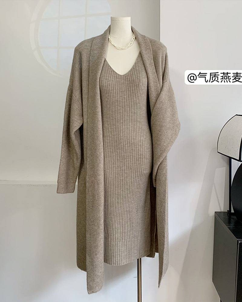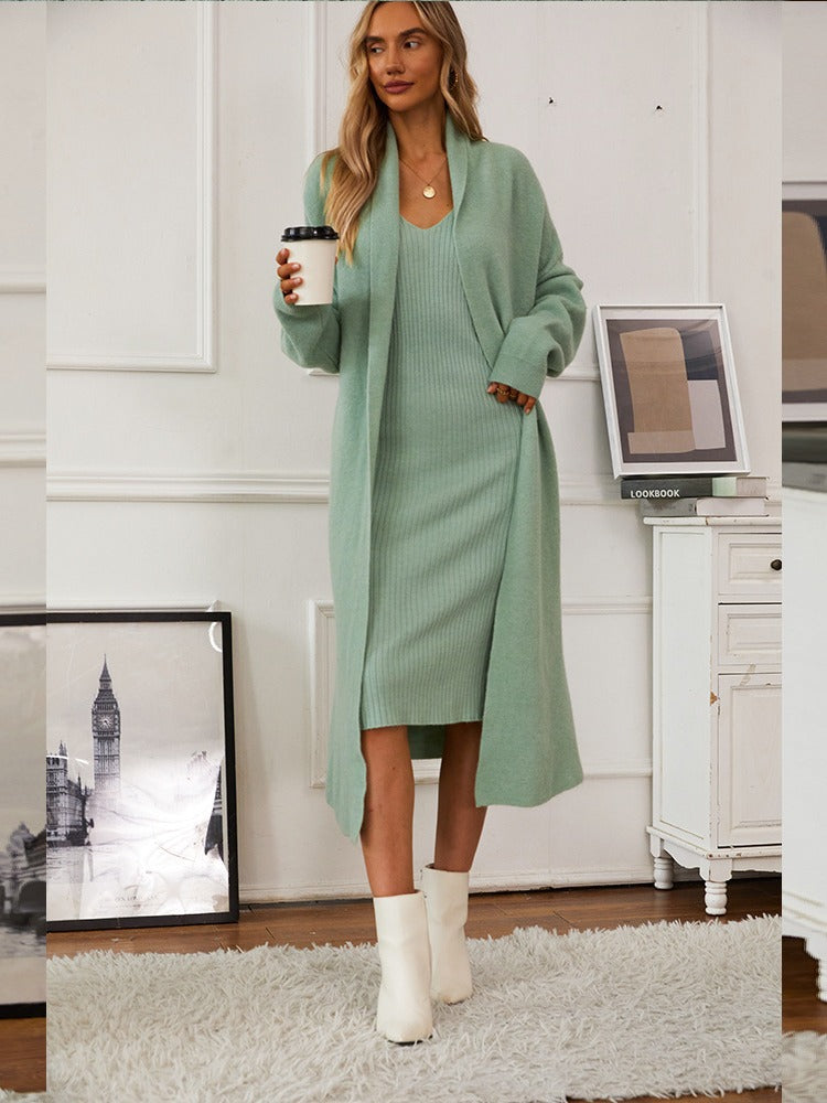 New Knitted Suit For Autumn/Winter 2025 Women's Elegant Vest Dress + Long Open Shirt Jacket Hot HZ1208