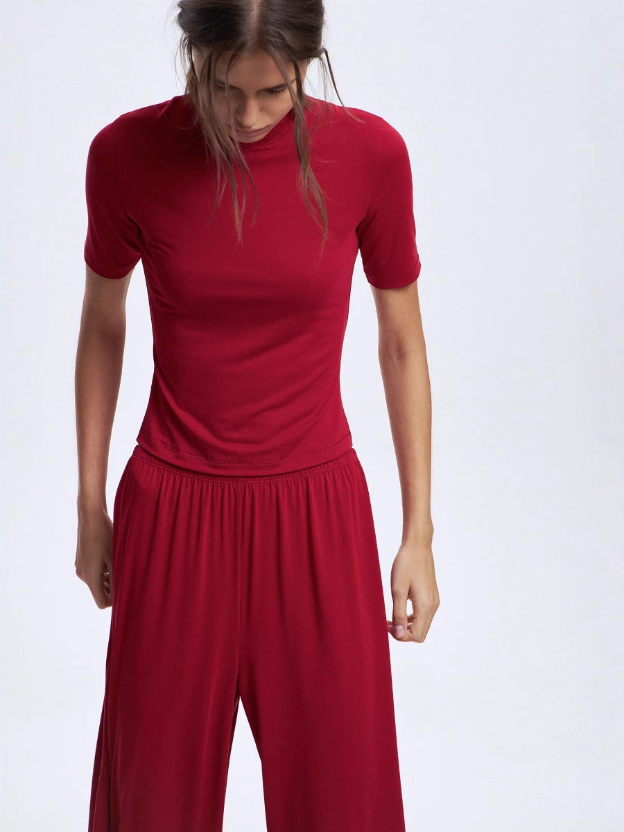 Spring/Summer 2025 New Modeler Set Women's Soft Comfortable Round-Neck Short-Sleeved Blouse + Trousers HZ1208