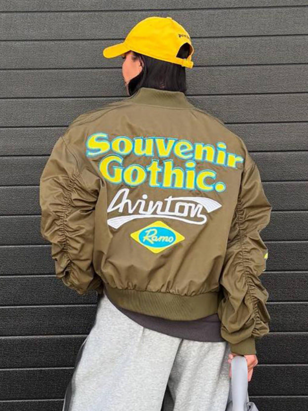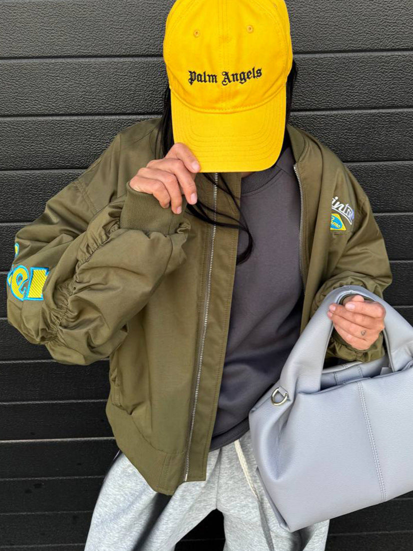 Trendy Street Babes Folding Baseball Suit Bomber Jacket Spring And Autumn Women Embroidered Retro Coat HZ1208
