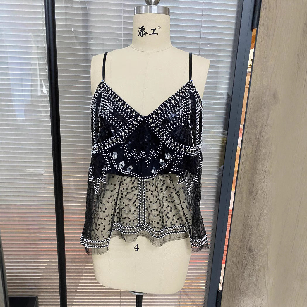 Women's New Sexy Butterfly Print Blouse V-Neckless Small Vest HZ1208